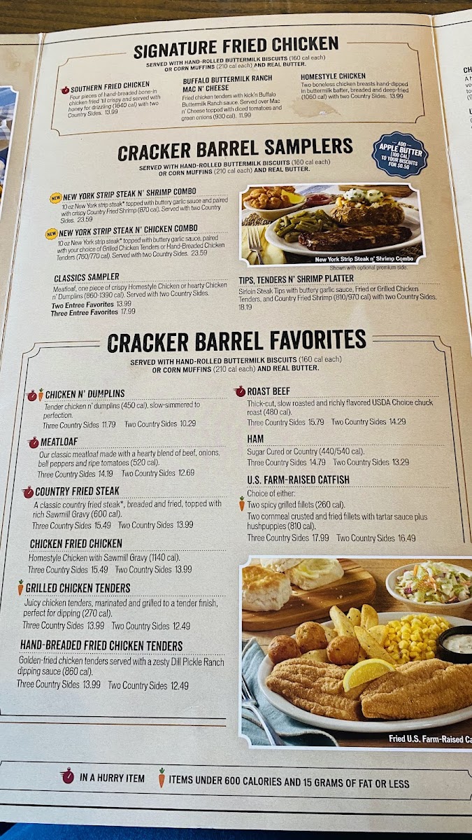 The menu at Cracker Barrel is a tribute to classic Southern cooking. From the beloved Country Fried Pork to freshly prepared biscuits served warm, the food here is comforting and flavorful. Many guests have praised the generous portion sizes and affordability, which makes Cracker Barrel an excellent choice for families and groups. The flavor profile of every dish is hearty and satisfying, as countless reviews suggest.