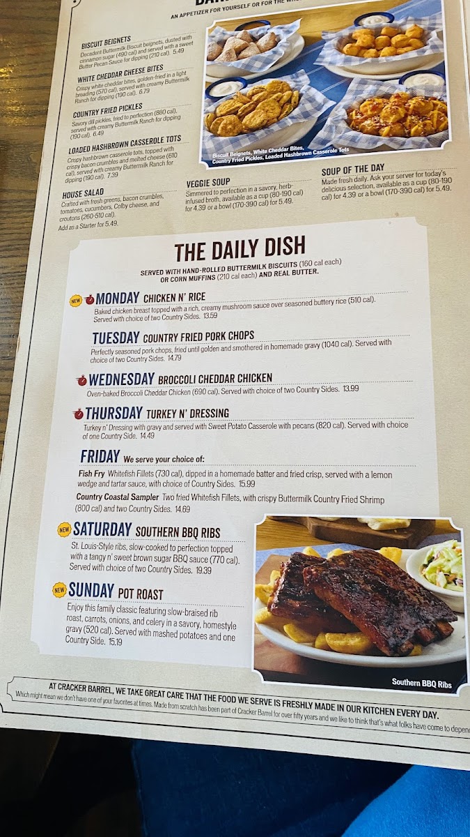 I lived in Vegas for almost 15 years and I recently started going to Cracker Barrel and let me tell you it’s honestly really good! The atmosphere makes me feel like it’s Christmas all year around it’s very cozy in there. The food is delicious every plate had a great taste. I highly recommend getting their Freshly Brewed Peach Iced Tea! Thank me later